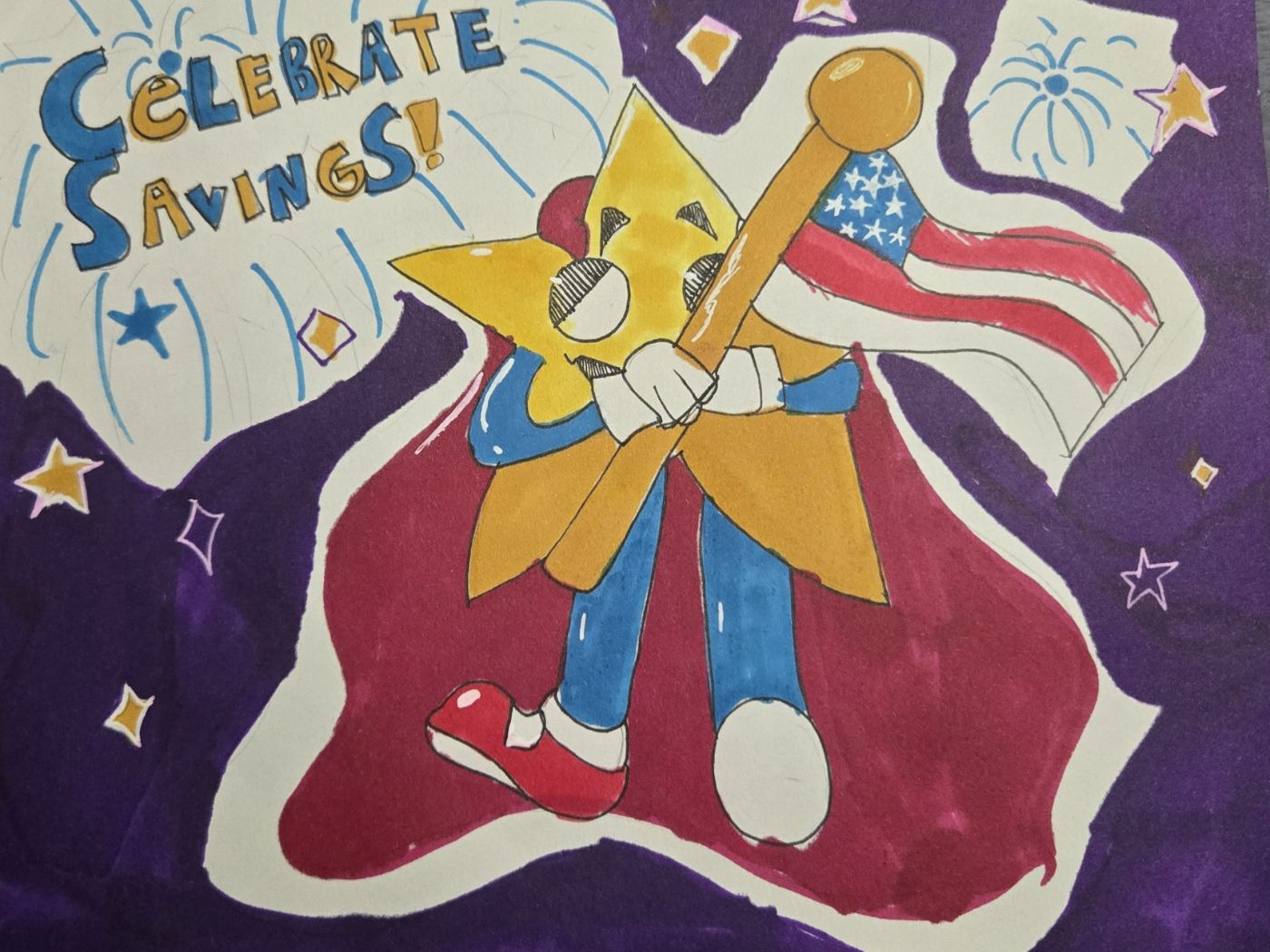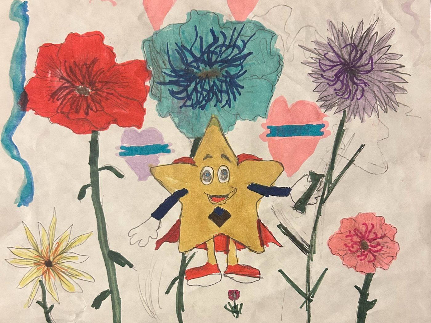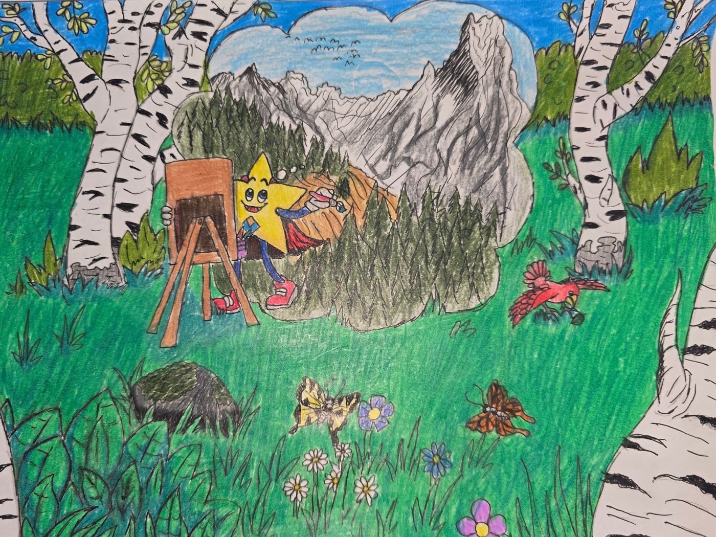 - Drawings may be colored with crayons or markers.